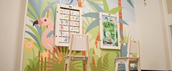 Außerdem gibt es einen Four Fun Spielturm und mehrere lehrreiche, analoge Wandspiele mit schönen Details wie Tier- und Pflanzenbildern, zu entdecken.