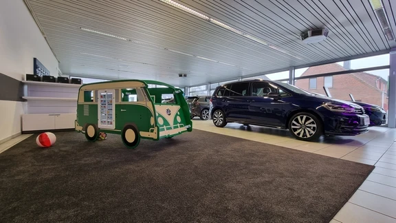 Mitten im Showroom steht nun ein maßgefertigter IKC VW Van: eine kompakte Spielecke mit interaktiven Elementen und ikonischem Design. Das Spielsystem fügt sich visuell in die Einrichtung des Showrooms ein und wurde mit Blick auf Sicherheit, Langlebigkeit und Wartungsfreundlichkeit entwickelt. Während die Eltern im Gespräch mit einem Verkaufsberater sind, können sich die Kinder sicher und selbstständig beschäftigen. So wird der Besuch im Showroom deutlich angenehmer – eine Win-win-Situation für Familie und Unternehmen.
