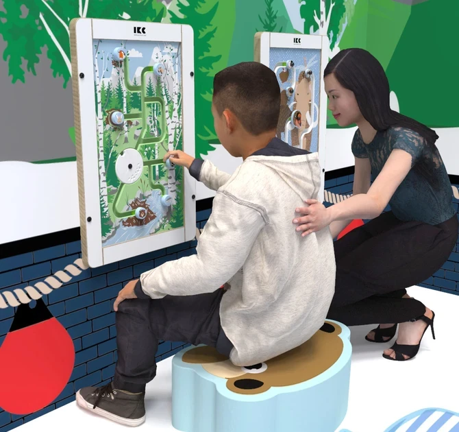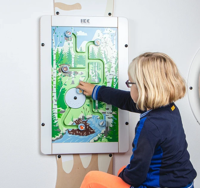 Into the Woods ist ein Sortierspiel, bei dem die Kinder die Tiere zurück in ihr Zuhause bringen müssen. Das rechteckige Wandspiel hat einen einzigartigen Rahmen aus Birkensperrholz mit einer weiß lackierten Front. Der moderne und natürliche Rahmen passt daher in jedes Interieur. Das Wandspiel Into the Woods kann mit den IKC-Softplays kombiniert und als Teil einer Spielecke genutzt werden.