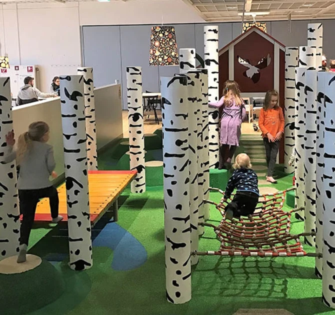 Μπορούμε να προσθέσουμε επιπλέον διασκέδαση αναρρίχησης και αναρρίχησης στο δάπεδο παιχνιδιού με την εγκατάσταση στοιχείων αναρρίχησης, όπως αυτή η γέφυρα σχοινιού. Εδώ, χάρη στο δάπεδο EPDM, τα παιδιά μπορούν να μετακινηθούν με ασφάλεια.