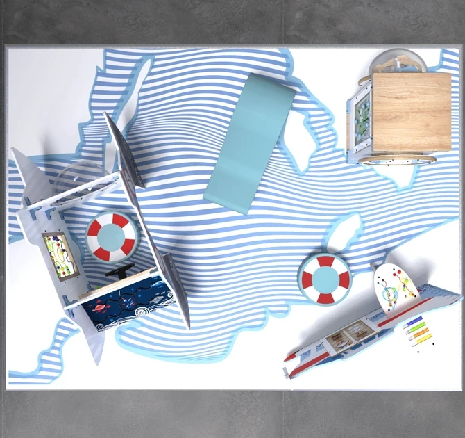 The standard floor design that come with this corner is made of printed vinyl. The total floor space is 12 m². If required, the concept can be adapted to suit your wishes, style and colours. Find more pre-planned, ready-to-play kids’ corners here.