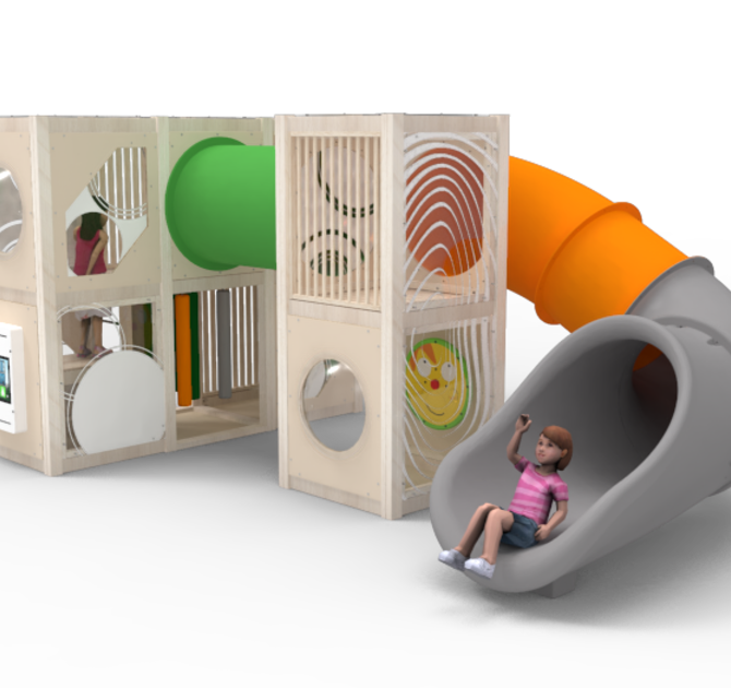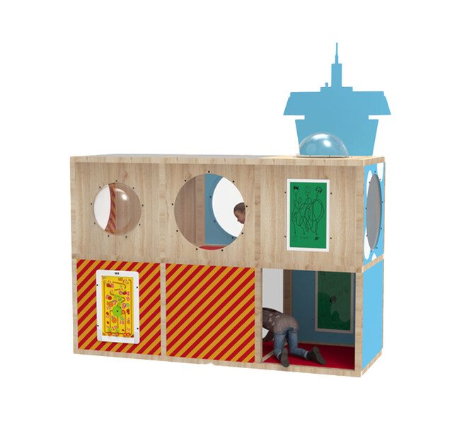 Play@IKC offers a wide selection of panels and add-ons to further enhance play value and visual appeal. Add panels with a dome window or polycarbonate for clear sightlines, integrate wall games for extra interaction, or choose a slide as a playful exit.