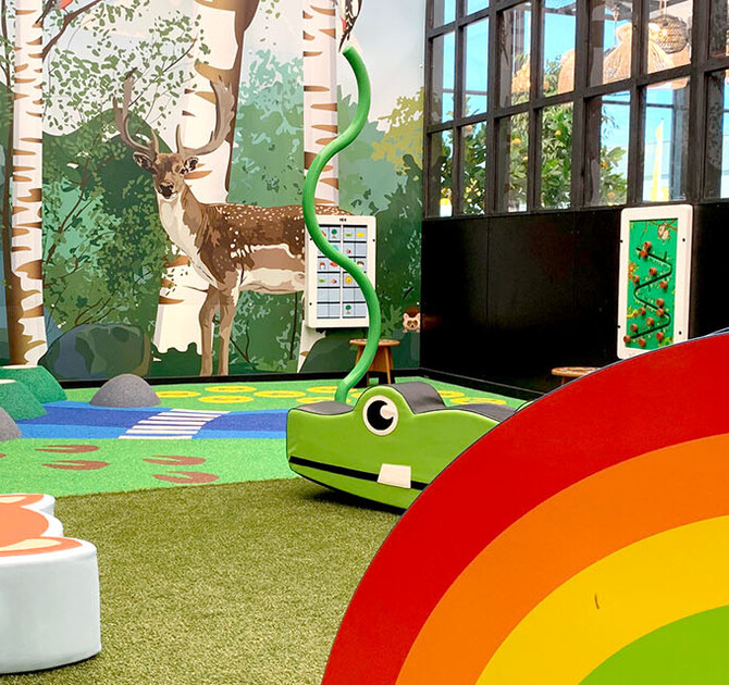In Restaurant de Plantage, visitors can sit down for a cup of coffee or lunch while shopping. To relieve parents of their worries, the garden center invested in a children's corner. A place where children can retreat and play actively in peace and quiet. The various game elements create an active and educational play atmosphere..
