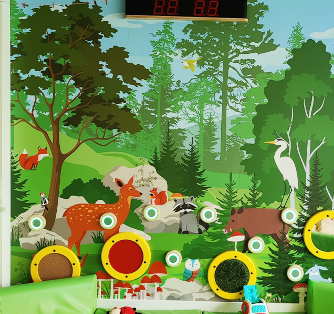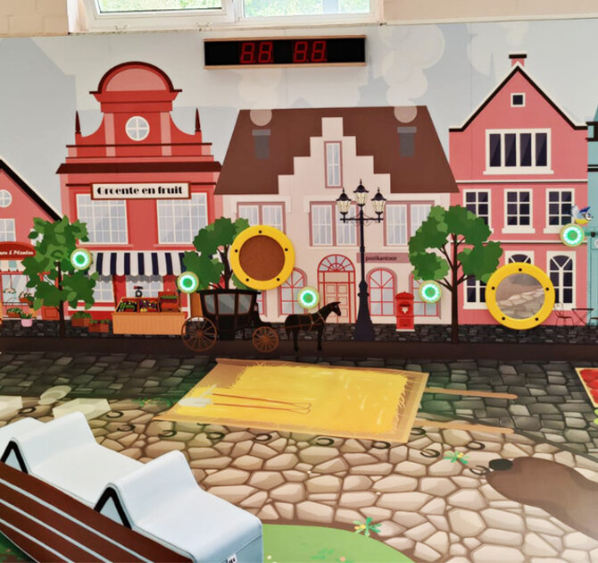 Wonderland in Borsbeek, is designed with both a village theme and a forest theme, each featuring an interactive experience wall and a custom vinyl play carpet. The various play elements spark imagination and invite endless fun.