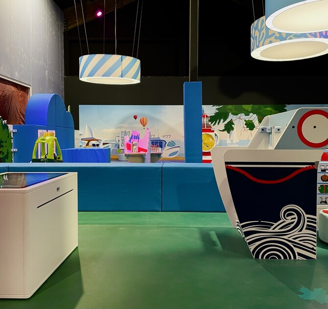 The space stimulates children's creativity, from beautiful lamps to custom-designed play elements such as the 'Four Fun' in lighthouse style. This lighthouse is equipped with various game modules including the 'Wheel of Emotions' and the 'Northern Lights'.