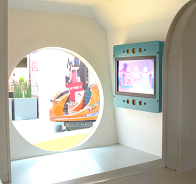 Children can discover this indoor playground with a colourful Monster theme! While parents have a rest on the surrounding benches, the kids are free to explore the futuristic playhouse filled with wall games, interactive play systems and fun light effects.