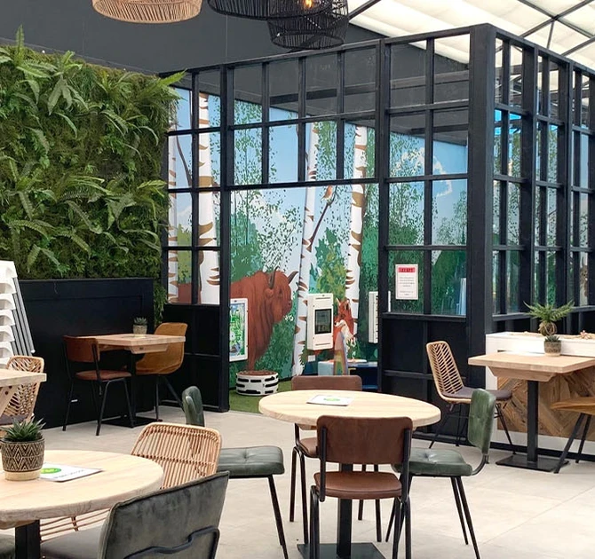 In Restaurant de Plantage, visitors can sit down for a cup of coffee or lunch while shopping. To relieve parents of their worries, the garden center invested in a children's corner. A place where children can retreat and play actively in peace and quiet. The various game elements create an active and educational play atmosphere..