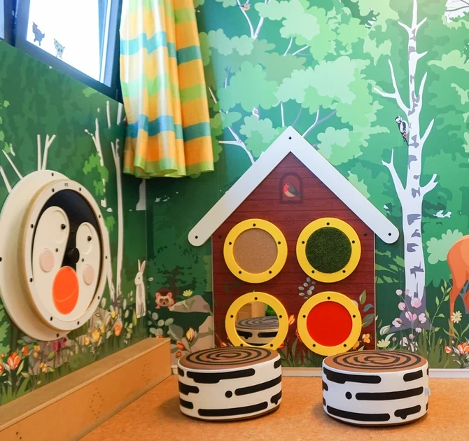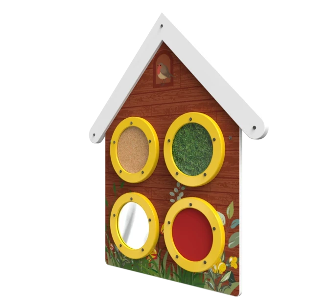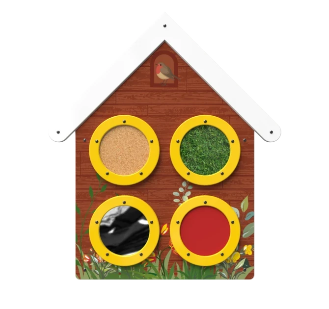 The sensory elements are an educational addition to your day care centre. Children can get to know the different elements that are attached to these round panels. The round panels are filled with different materials like cork, PU leather and artificial grass. It stimulates children to playfully discover and feel different structures.