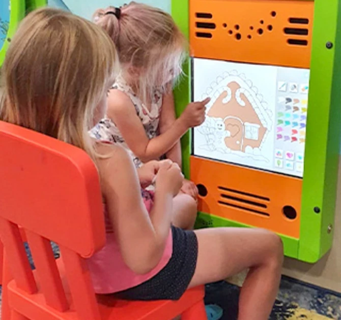 Kolorowe meble dziecięce i wykończenie pokoju zabaw sprawiają, że dzieci jeszcze bardziej lubią tu spędzać czas.