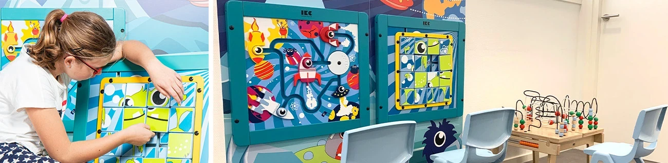 During their visit, children are introduced to the IKC Monster Collection. This adventurous collection had a Space theme that is especially developed to take children on a journey through the universe. With various play concepts, Ocram and his friends help children to create, discover and develop in a fun manner. The bead table from the IKC Buxus collection completes the whole play area with entertainment for the younger kids.