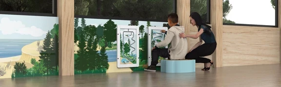 The visitor centre has added the educational kids' corner to their exhibition area, because they want to offer enough activities for young and old. By placing the play corner in the exhibition area, children can enjoy themselves while their parents and other visitors have more time to admire the exhibition.