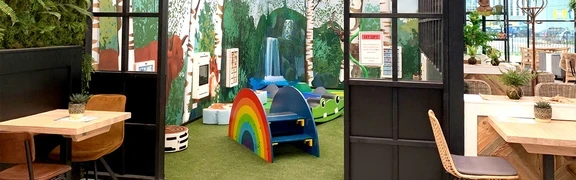 In Restaurant de Plantage, visitors can sit down for a cup of coffee or lunch while shopping. To relieve parents of their worries, the garden center invested in a children's corner. A place where children can retreat and play actively in peace and quiet. The various game elements create an active and educational play atmosphere..