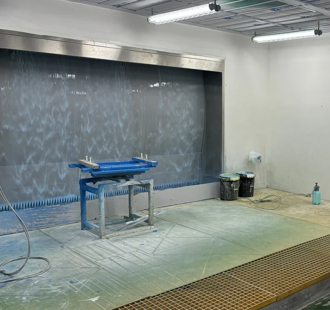 After screen printing, the wooden modules are spray-painted in special cabins. Paint particles are carefully captured so that no harmful substances enter the environment.
