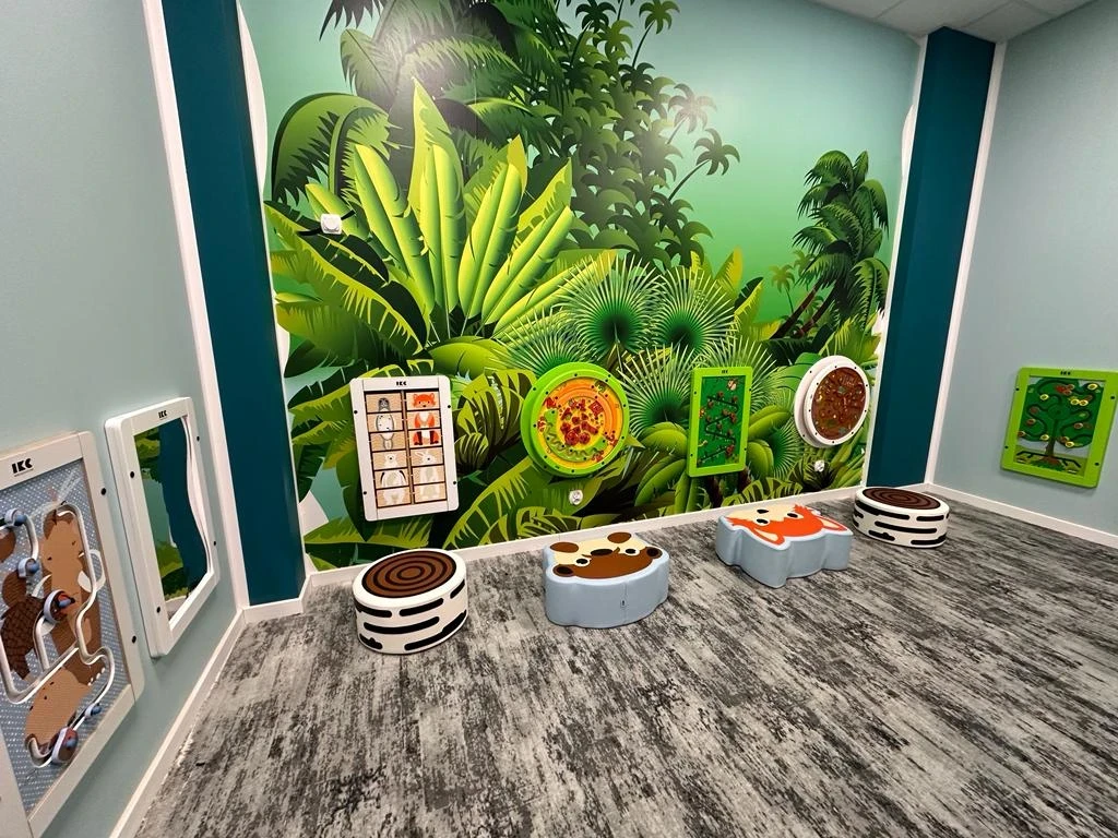 The playroom is equipped with high-quality, sustainable play solutions that stimulate creativity, develop observation skills, and improve concentration. Every element was carefully selected to provide children with both educational and entertaining play experiences.