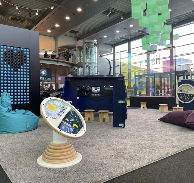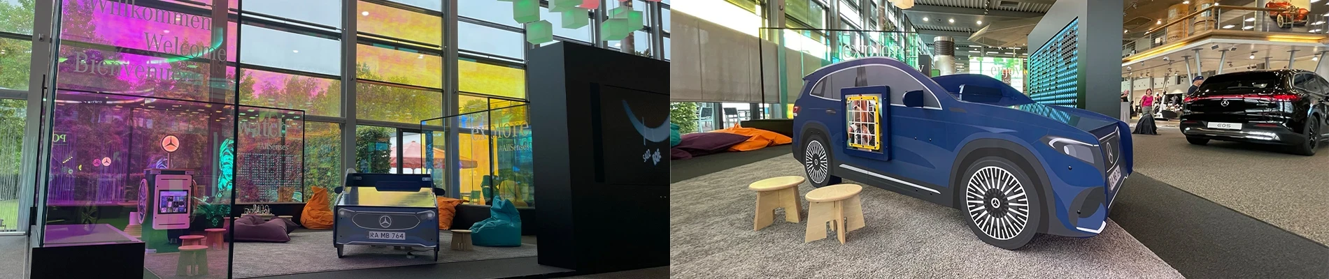 Welcome to the Mercedes-Benz Customer Center in Sindelfingen, where innovation, luxury, and experience come together. From the stylish reception area to the moment customers take delivery of their brand-new vehicle, everything here revolves around creating the perfect brand experience. With the addition of a brand-new children’s corner, Mercedes-Benz is now focusing fully on its youngest visitors as well. In collaboration with IKC, a playful, educational, and brand-aligned children’s environment has been created – a place where the experience is truly designed at child level.