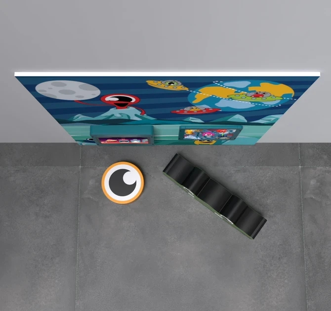 This kids’ corner contains wall decorations, two softplay elements, a play module on the wall and an interactive play system with a 21 inch touchscreen. The touchscreen comes with our Galaxy explorer software. This educational and non-violent software is especially developed by the IKC studio and contains 12 games that are suitable for children from 4 to 8+ years old. It is also possible to choose one of the other software options.