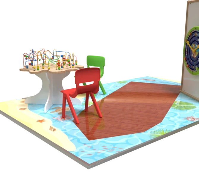 Create a true beach experience with the water edition of the Vinyl floor! With this floor, you can turn any location into a true sun, sea and beach paradise where children can have fun.