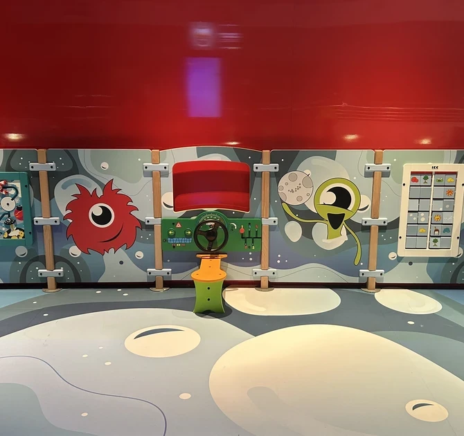 The smart mix of digital and analogue play makes this play corner appealing to all ages. There are interactive touchscreens with educational games, as well as classic wooden toys that stimulate creativity and motor skills.