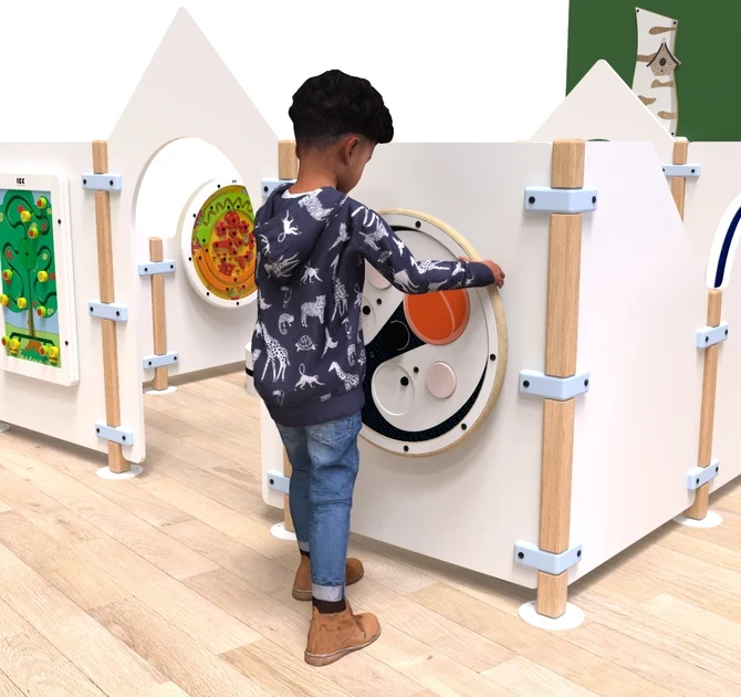 Fence Playwheel is a play panel that allows you to easily attach any IKC Playwheel. By adding play value to the panel, you give children the chance to discover a playful surprise around every corner of the play area.
