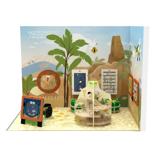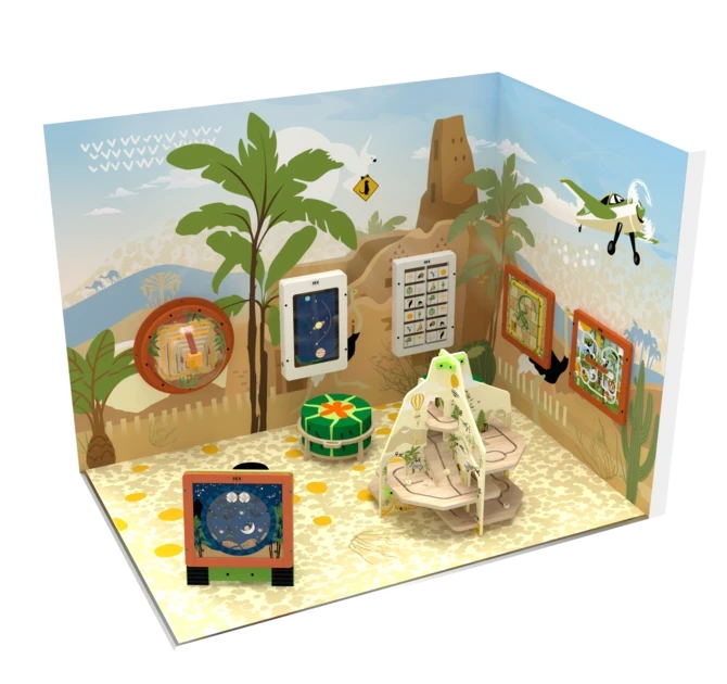 With this complete Desert play corner, you can easily add play value to your organisation. Designed by our team as a ready-to-use kids’ corner, it fits perfectly into the corner of a room while creating an immersive desert-themed play environment.