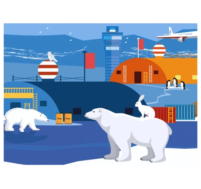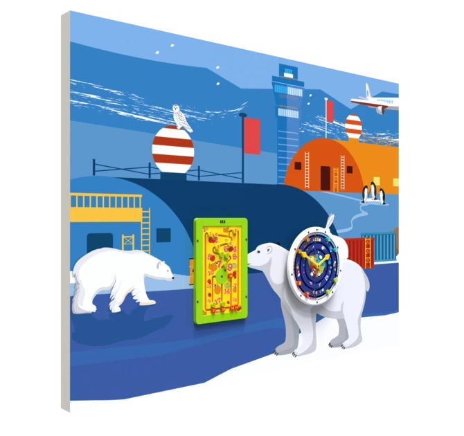This wallcovering with Arctic theme contains a large harbour, polar bears and other northern animals.