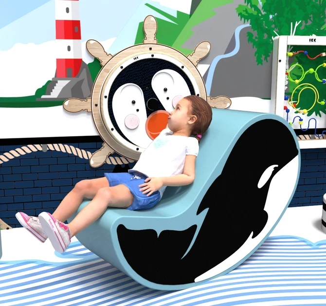 Softplay Olly is a tough, durable softplay element in the shape of an orca. Olly the orca can be used to play with, sit on or climb on. When Olly is placed on this belly, kids can use its back as a lounge chair. Olly makes a great addition to any play corner.