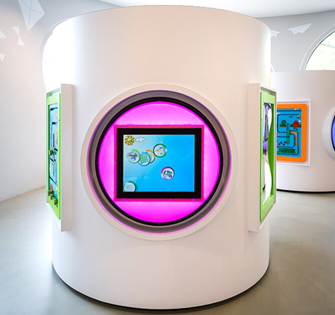 IKC ha creado la solución de juego ideal para H&M. Los dos cilindros blancos, que encontrarás en la zona de niños del H&M en el Beurstraverse de Rotterdam, contienen una serie de sistemas de juego analógicos e interactivos.