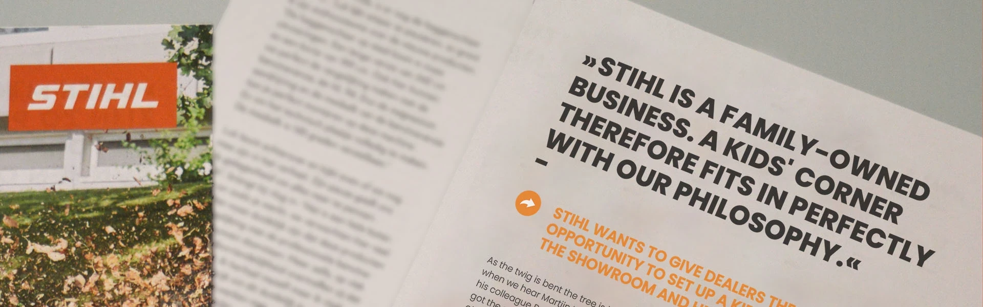 En ajoutant ce concept de jeu aux magasins, qui commercialisent la marque STIHL, la marque offre un plaisir supplémentaire, une nouvelle expérience pour les enfants aussi!