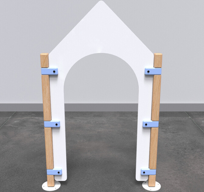 Cette cloison comporte des poteaux en bois de hêtre de chaque côté, avec des connecteurs bleus ou verts. Cette construction permet à toutes les cloisons IKC d’être connectées entre elles, vous permettant ainsi d’agrandir l’aire de jeu de façon modulable. Notre collection propose également des cabanes de jeu complètes.