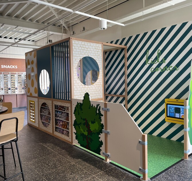 Az új játszósarok és ülősarok barátságos környezetet teremt minden látogató számára. Amikor a gyerekek békésen játszanak, az harmóniát teremt az üzletben is. Nyugodt és kellemes élményt biztosítva mindenkinek a várakozás során.
