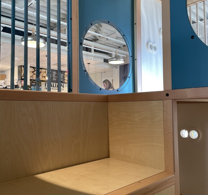 A Shell elképzelése szerint létrehoztunk egy vandalizmusbiztos dizájnt, amely zökkenőmentesen illeszkedik a Shell Café koncepciójának márkaidentitásához. A játszósaroknak érdekesnek kellett lennie a gyermekek számára, de közben vizuálisan visszafogottnak kellett maradnia, figyelembe véve az üzleti utazók és a gyermektelen ügyfelek jelenlétét.