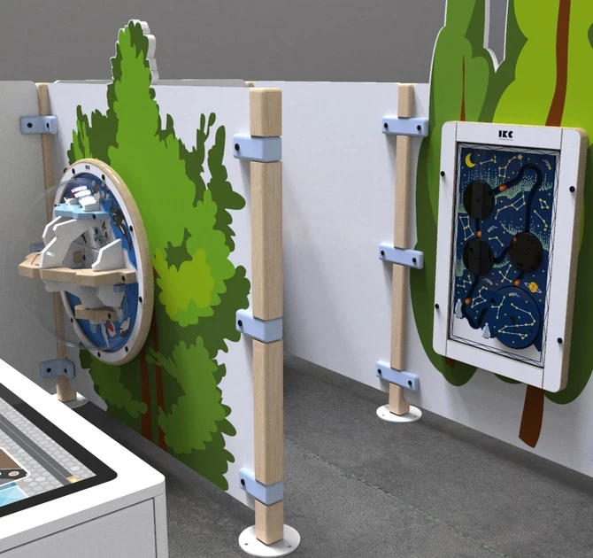 フェンス、インタラクティブプレイシステム、壁面ゲームがセットになった大型プレイコーナーです。多くのゲーム要素があるので、どの子も気に入ったあそびが見つかるでしょう。