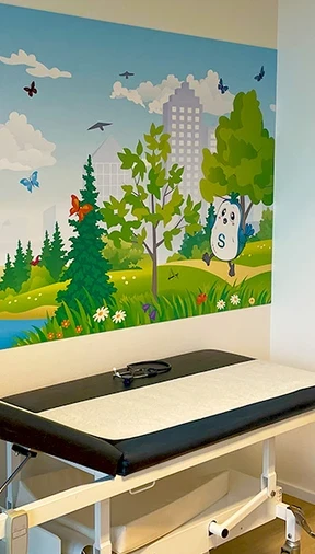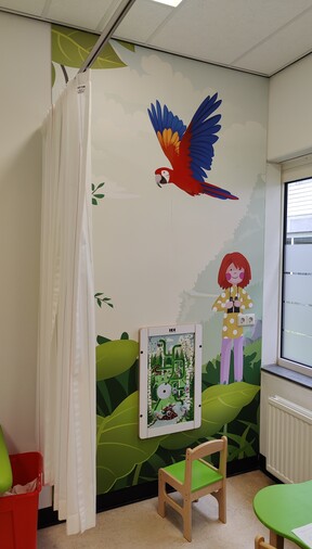 Door de mascotte te verwerken in het design, wordt de speelhoek herkenbaar. Ook het bezoek wordt minder spannend, zo zijn de afspraken efficiënter.