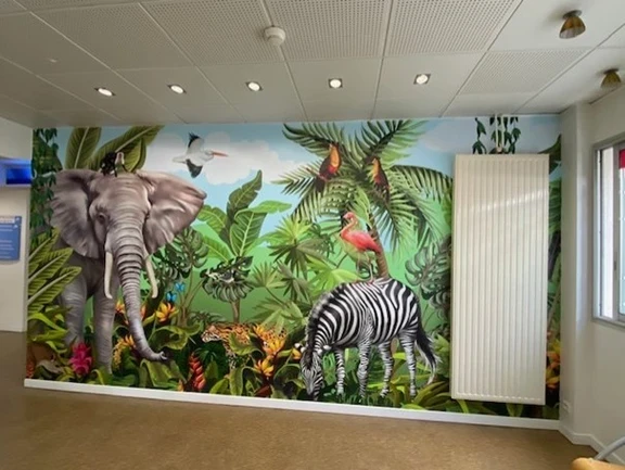 In de pediatrische wachtkamer van het ziekenhuis in Morlaix werd een rustgevend muurdecor aangebracht.