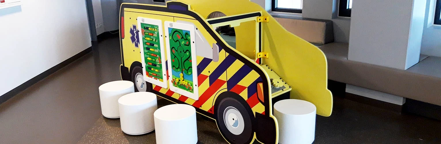 Gezondheidszorginstelling Rijndam Revalidatie ging u al voor. In samenwerking met de locatie Erasmus MC en stichting DADA hebben wij een speelconcept in de vorm van een ambulance geplaatst. Hier kunnen kinderen zich mee vermaken middels wandspellen en een interactief speelsysteem. De spelende kinderen ontsnappen even uit hun dagelijkse leven en zorgen, waardoor zij minder tegen een ziekenhuisbezoek op zien en ontspannen het consult in gaan.