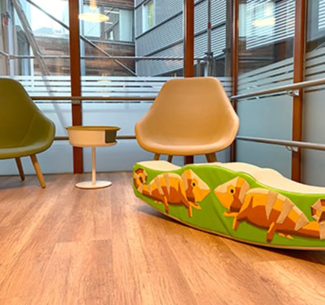Om het het plaatje compleet te maken investeerde Het Wilhelmina Kinderziekenhuis in een speelconcept van IKC. Met dit speelconcept in de wachtkamer is het WKZ nóg toegankelijker voor jonge gezinnen. Spelen helpt om spanning te voorkomen. Het zorgt voor afleiding en een ontspannen en rustige sfeer. Artsen en verpleegkundigen merken de ontspannen sfeer terug in de behandelkamer.