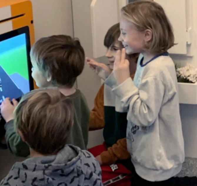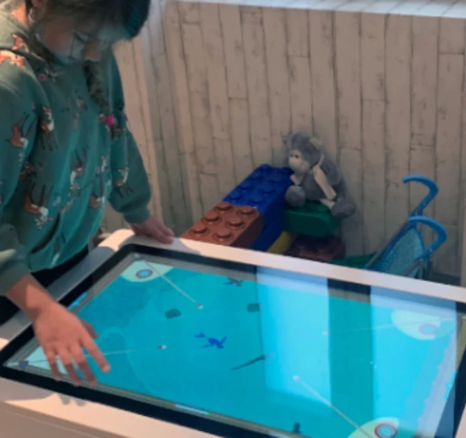 De Delta 32 inch touch table is ook geschikt voor de wat oudere kinderen. Dit speelsysteem bevat 8 verschillende spellen. De software is zo ontworpen dat meerdere kinderen tegelijk een spel kunnen doen vanaf elke zijde van de speeltafel. Ze kunnen Sushi verzamelen, voetballen, vissen of basketballen. Deze spellen ontwikkelen de behendigheid en de oog-hand coördinatie, maar stimuleren ook samenspel! Voor deze leeftijdscategorie is ook de Delta 21 Steering Wheel geplaatst, deze is geschikt voor kinderen vanaf 8 jaar. Door het stuurtje te draaien kunnen kinderen met een auto racen, of eieren vangen.