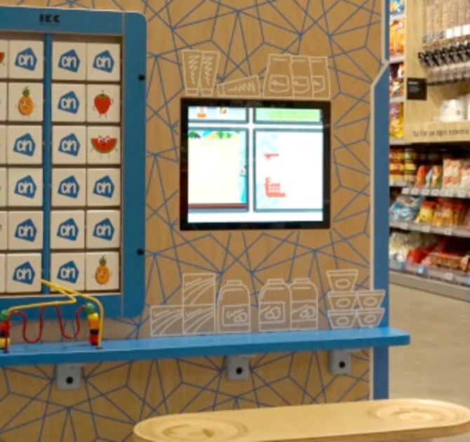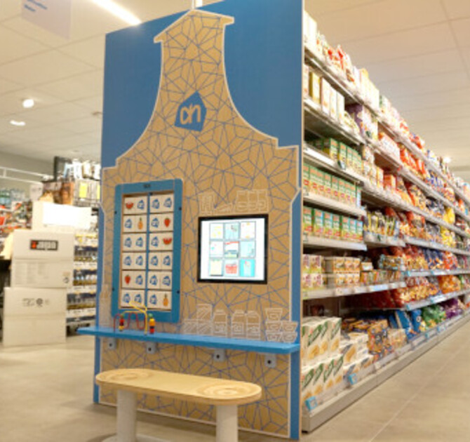 IKC maakt al jarenlang onderdeel uit van de formule van Albert Heijn. Iedere vestiging die wordt verbouwd, krijgt een custom speelhoek in de supermarkt. In deze kinderhoek wordt speelwaarde toegevoegd met ons wandspel Crazy mirror en een 17 inch interactief touchscherm met custom Albert Heijn supermarkt software. In de nieuwere speelhoeken van de Albert Heijn supermarkten wordt een custom memory geïnstalleerd. Deze memory heeft het logo van Albert Heijn op de achterkant van de blokjes en verschillende boodschappen op de voorkant. Deze kunnen worden gematched.