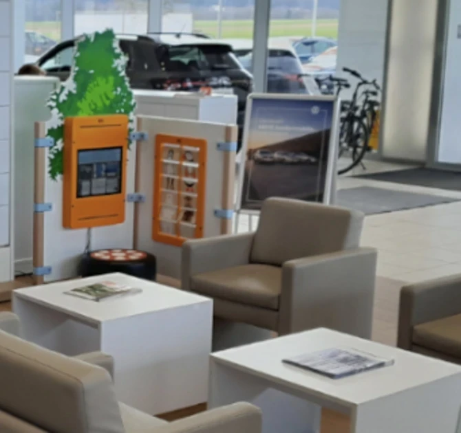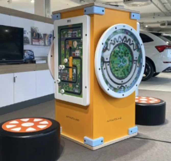 Op diverse locaties van familievriendelijke autodealer AVP autoland is speelplezier toegevoegd. Er zijn verschillende designs voor de custom kinderhoek gemaakt. Hier is ook rekening gehouden met vestigingen die minder ruimte hebben dan anderen, maar die wel willen investeren in de kleinste bezoekers. Zoals bijvoorbeeld bij de stijlvolle wachtruimte die in dit portfolio te zien is. Hier is een opstelling van 2 hekwerken geplaatst met daarop een wandspel en een Delta 17 inch. Zo is er veel speelwaarde toegevoegd in een hoekopstelling. Een andere perfecte oplossing op een klein oppervlak is de Fourfun speeltoren. Op dit speelsysteem zijn 4 spellen geplaatst, zo kunnen 4 kinderen tegelijk spelen op 1 m2! De spellen zijn in het thema auto’s en passen perfect in de stijl van AVP Autoland.