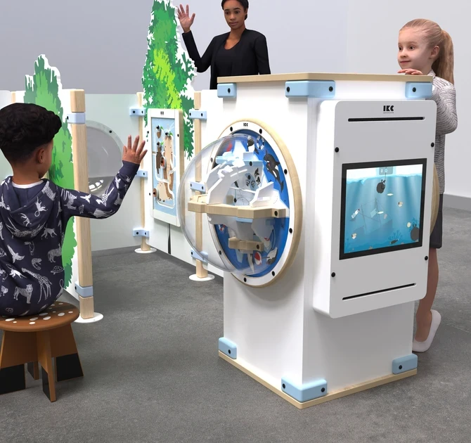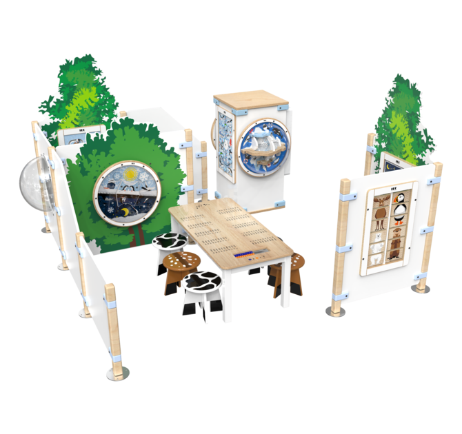 Deze kant-en-klare hekwerk opstelling bestaat uit acht speelhekken met zes spelmodules. Daarnaast staat er een Table Table met zes kinderkrukjes en een Four fun speelsysteem. Op dit speelsysteem zitten drie spelmodules en een Delta 17 inch touchscherm gemonteerd. Dit interactieve scherm bevat Arctic adventures software met 14 spellen die geschikt zijn voor kinderen van 4 tot 8+ jaar. Maar u kunt ook kiezen uit een van onze andere software opties.