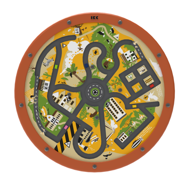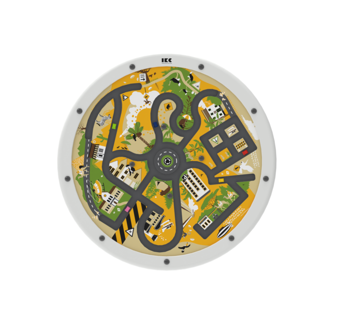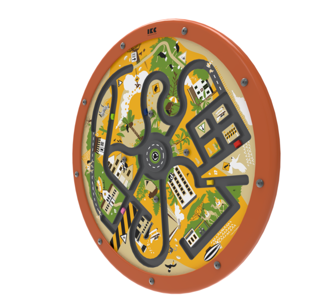 Het ronde speelpaneel kan direct aan de muur worden bevestigd of worden gemonteerd op een IKC speelsysteem, waardoor het een ruimtebesparende oplossing is. Het frame is gemaakt van duurzaam beukenhout.