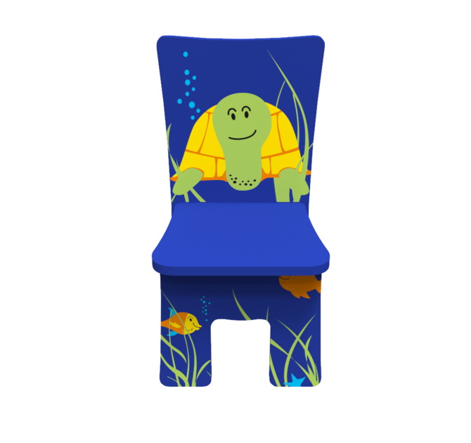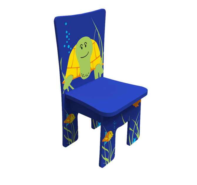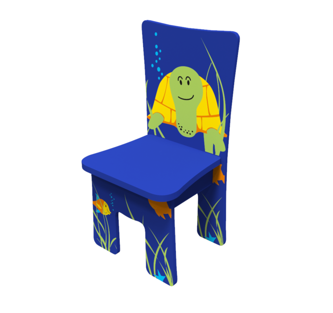 De kinderstoel Turtle chair is onderdeel van de Zee collectie kindermeubel set en heeft een afbeelding van een schildpad op de rugleuning. Het ergonomische design van de houten kinderstoel is comfortabel en zorgt voor een goede zithouding. De kinderstoel kan perfect gecombineerd worden met onze interactieve spellen, wandspellen of de kralentafel.