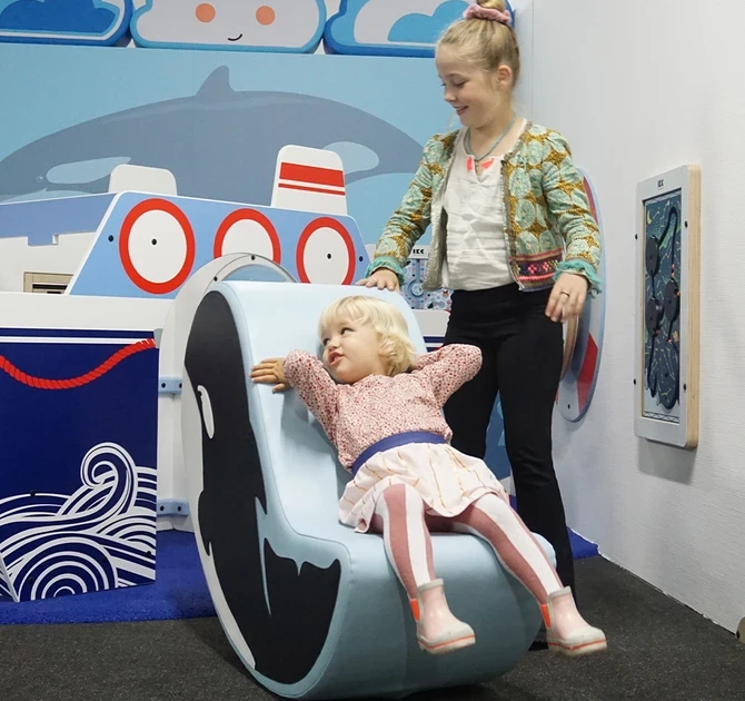 Softplay Olly is een handgemaakt zacht speelelement. Softplay Olly is een orka en kan gebruikt worden om op te zitten, te klimmen of om ermee te spelen. Wanneer de orka op zijn buik ligt kan deze gebruikt worden als ligstoel. Het kan goed gecombineerd worden met de IKC wandmodules.