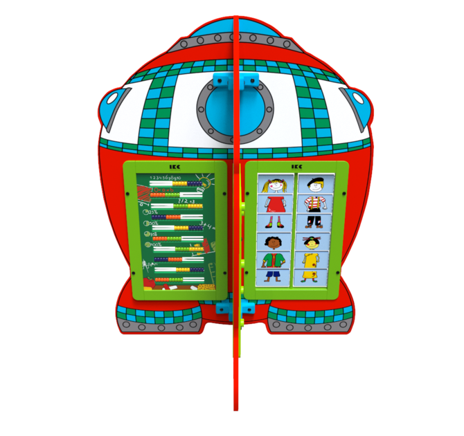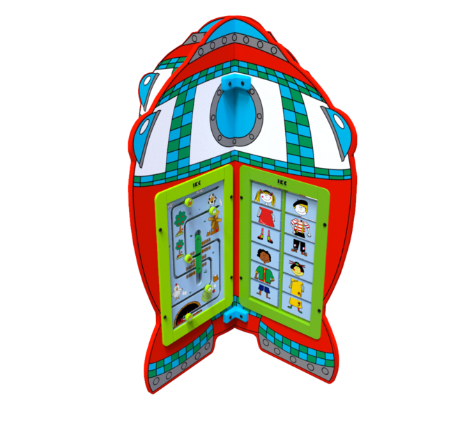 Speelsysteem Planet transport is een speelelement in de vorm van een ruimteschip, waarop vier rechthoekige wandspellen naar keuze bevestigd kunnen worden. Het speelsysteem kan worden ingezet als een losstaand speelelement of als onderdeel van een grotere speelhoek.