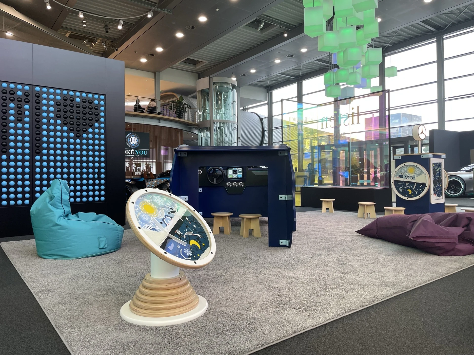 Welkom bij het Mercedes-Benz Kundencenter in Sindelfingen, waar innovatie, luxe en beleving samenkomen. Van het stijlvolle ontvangstcentrum tot het moment waarop klanten hun gloednieuwe voertuig in ontvangst nemen: alles draait hier om een perfecte merkervaring. Met de toevoeging van een splinternieuwe kinderhoek zet Mercedes-Benz nu ook volop in op jonge bezoekers. In samenwerking met IKC is er een speelse, educatieve en merkgetrouwe kinderomgeving gecreëerd – een plek waar beleving letterlijk op kindermaat is gemaakt.