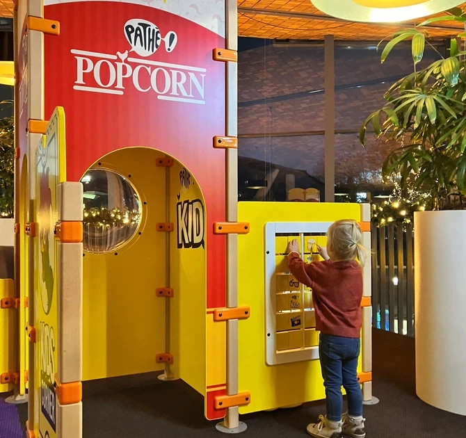Net als in Ede en Zwolle sluit de kinderhoek naadloos aan bij de kenmerkende stijl van Pathé. Van de charmante Franse haan, Charlie, die de muurdecoratie siert tot zijn aanwezigheid in het ontwerp van de hekken en de software, elk detail is zorgvuldig afgestemd op de charme van Charlie.