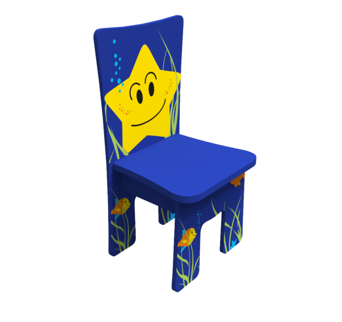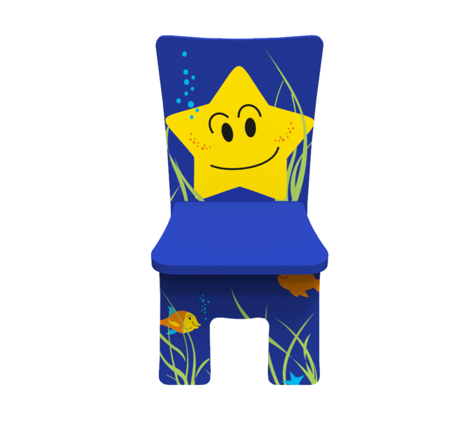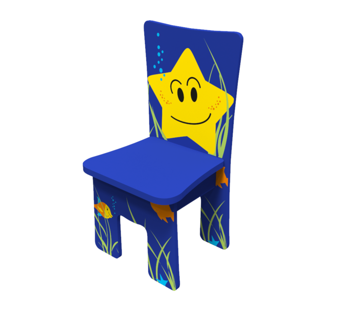 De kinderstoel Starfish chair is onderdeel van de Zee collectie kindermeubel set en heeft een afbeelding van een zeester op de rugleuning. Het ergonomische design van de houten kinderstoel is comfortabel en zorgt voor een goede zithouding. De kinderstoel kan perfect gecombineerd worden met onze interactieve spellen, wandspellen of de kralentafel.