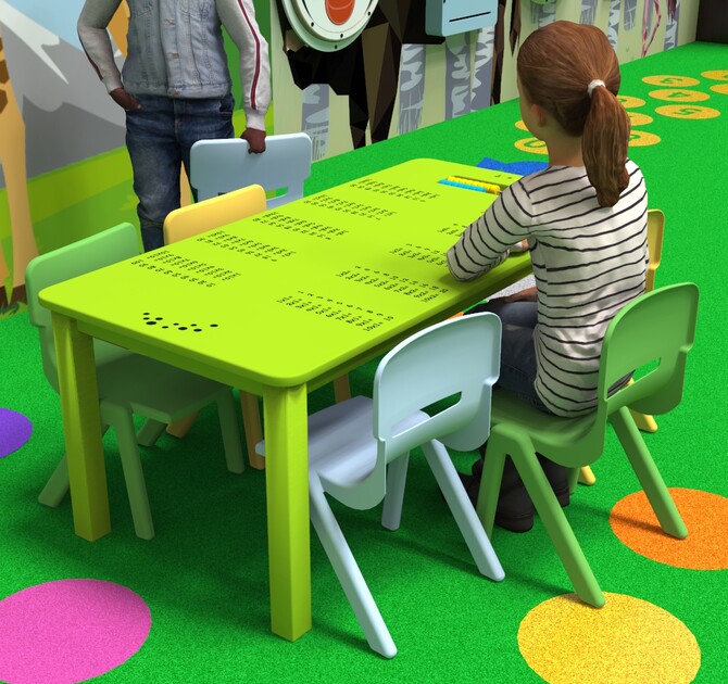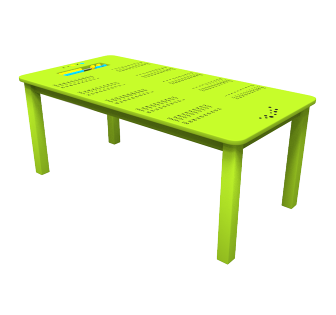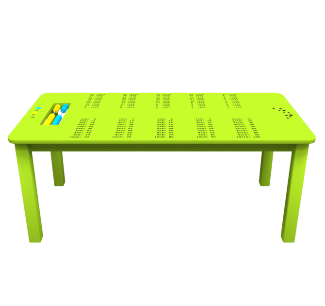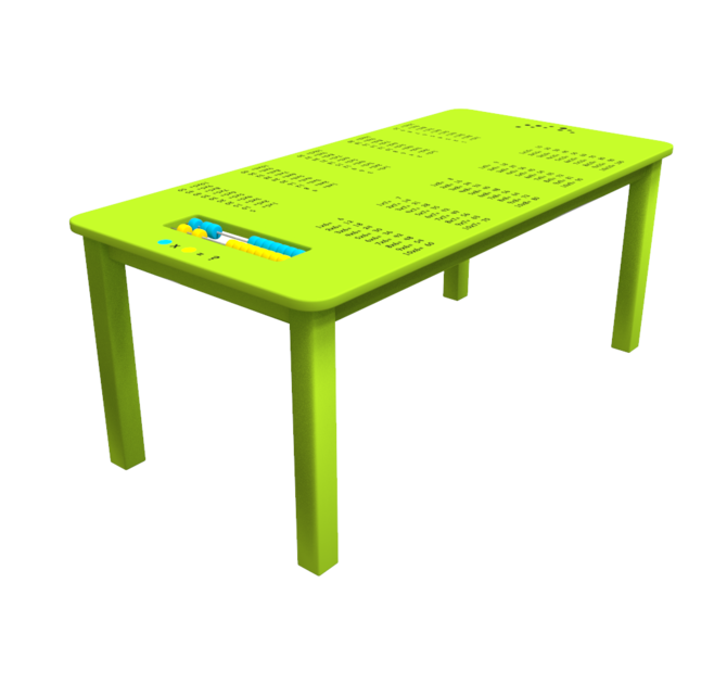 Op het tafelblad van de Table Table green zijn rekentafels van 1 tot en met 10 geprint. Dit maakt de Table Table ideaal voor educatief ingerichte kinderhoeken. Kinderen leren met dit speelsysteem spelenderwijs rekenen. Het ingebouwde telraam zal de kinderen uitdagen.