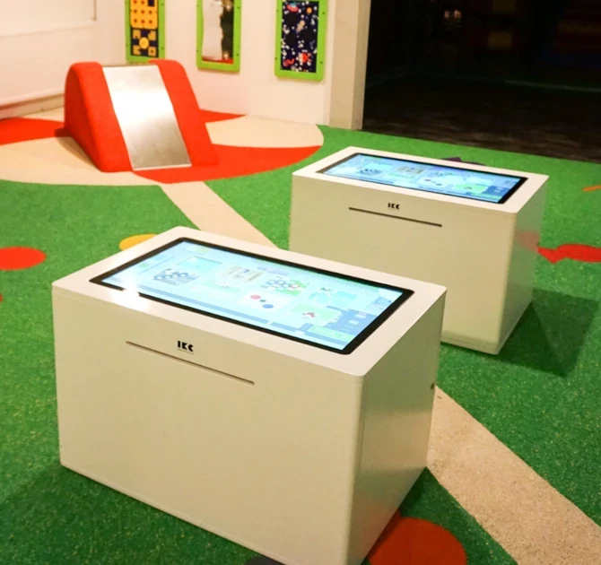 Voor de leeftijdsgroep van 6 tot 12+ jaar heeft IKC studio speciale touchtable software ontwikkeld die voldoet aan hun leer- en ontwikkelingsbehoeften. Ze kunnen in teams tegen elkaar voetballen, sushi eten aan de bar of gaan vissen.