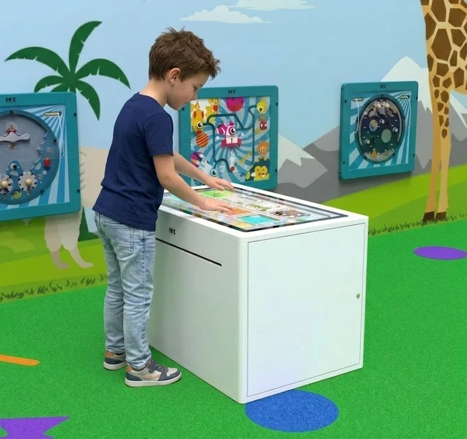 De Delta 32 inch Touchtable is een interactief speelsysteem met een inch multitouch scherm met 8 verschillende spellen. De vorm van de tafel en de meerdere touchpoints zorgen ervoor dat er tot vier kinderen samen kunnen spelen.